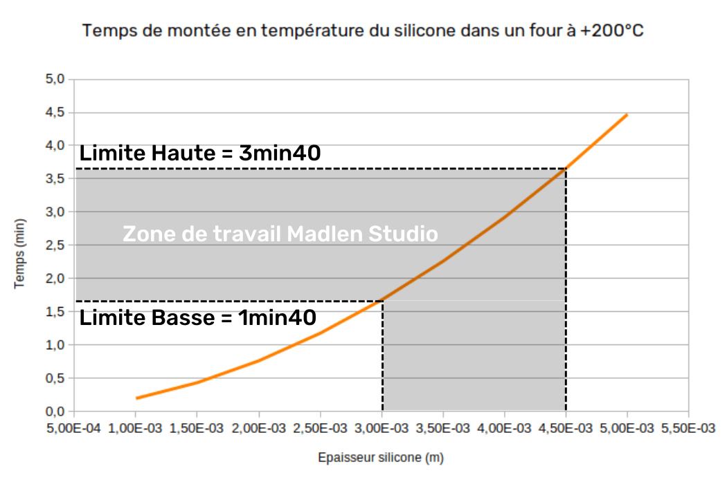 Nous avons calculé le temps de montée en température de nos moules pour que vous puissiez adapter vos temps de cuisson. En moyenne, il faut compter 3min30 pour que le moule ait atteint la température du four.